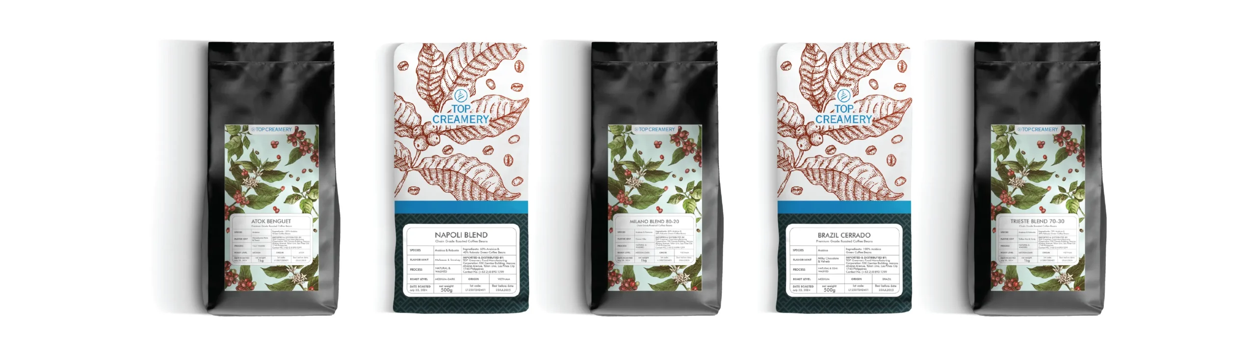 Compared to commodity-grade beans, TOP Creamery Coffee Beans offer superior roast uniformity, consistent grind behavior, and a sensory experience backed by cupping standards. Explore both chain-grade blends and estate-grown premium options like Atok Benguet, Brazil Cerrado, and Huehuetenango. Pair these with other TOP products such as milk tea powders, flavored syrups, and frappe bases for end-to-end beverage development.