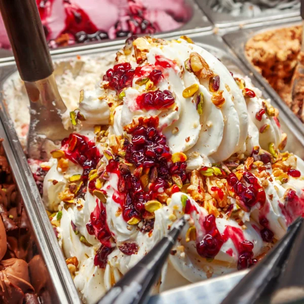 A professional line of marbling, filling, and finishing pastes crafted for gelato, ice cream, soft serve, sorbet, pastries, and confectionery. The promise: bold flavor, stable texture at low temperatures, and a clean, glossy finish when used as ripple, insert, topping, or coating. Key points include fruit-forward options with real pieces, indulgent creams, and nut-based pastes for cremino and praline work.