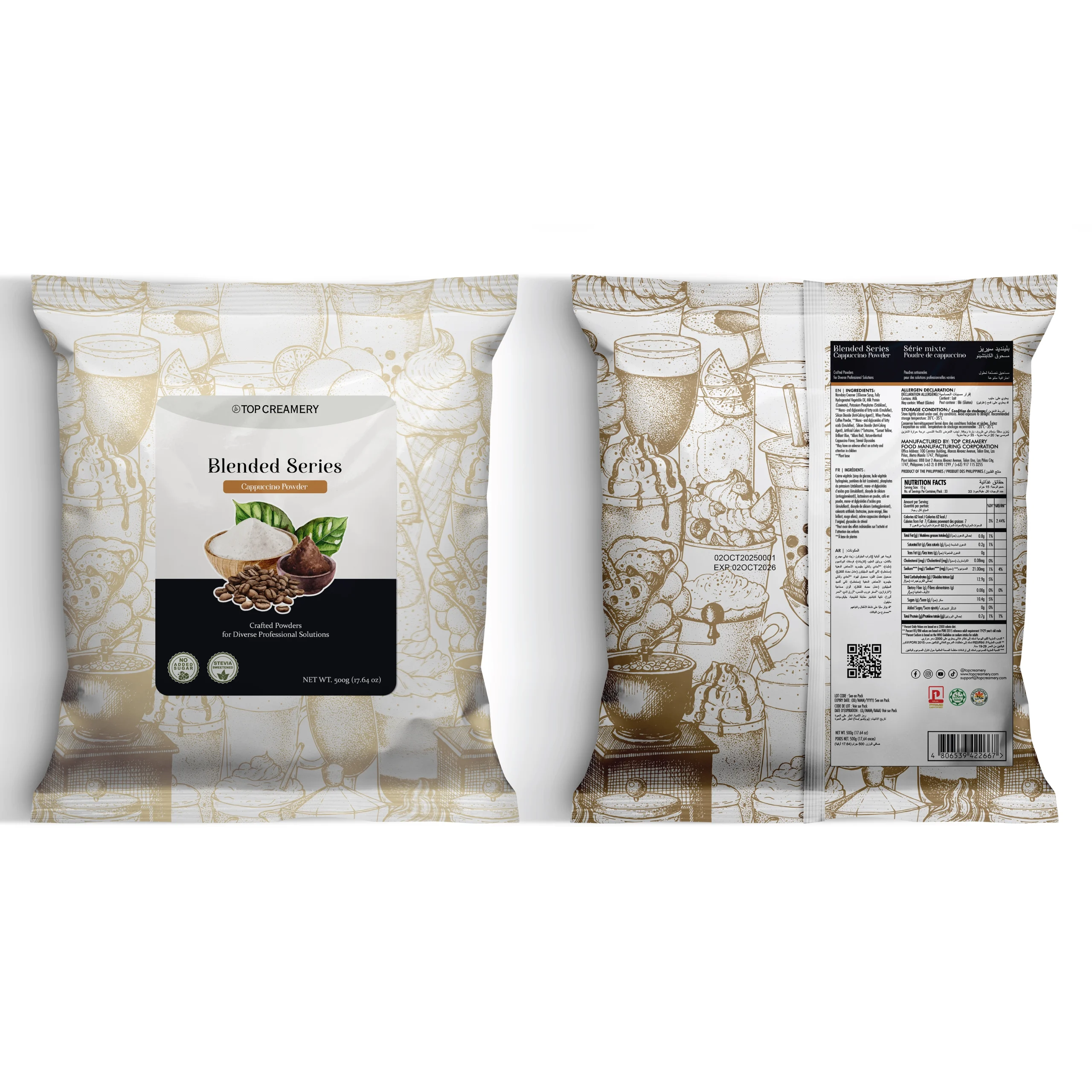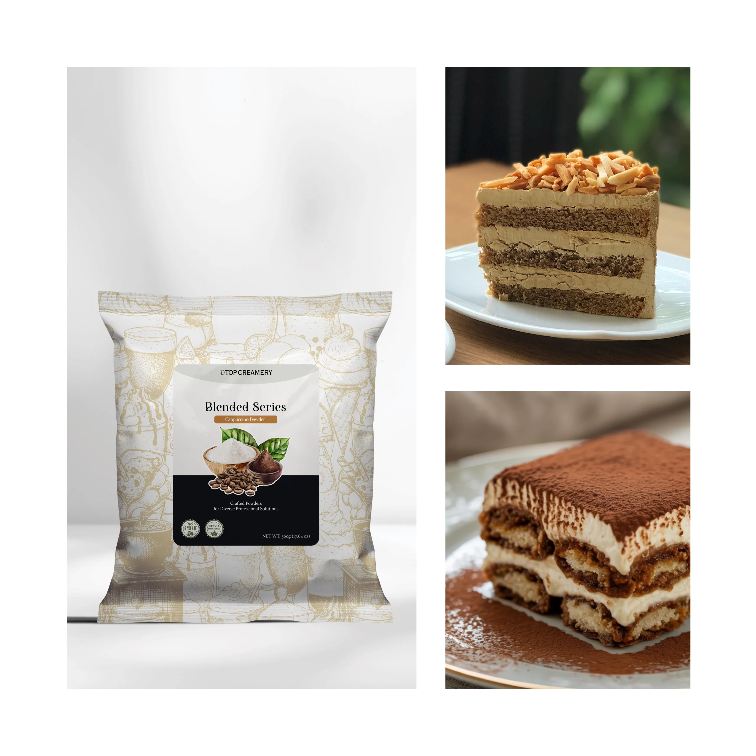 TOP Creamery for formulation craft, texture precision, and costed performance. Blended Series Cappuccino Powder 500g unites cappuccino pastry powder with cappuccino gelato base to build signatures that travel from pass to display with confidence. Partner with TOP to trial, calibrate, and launch.