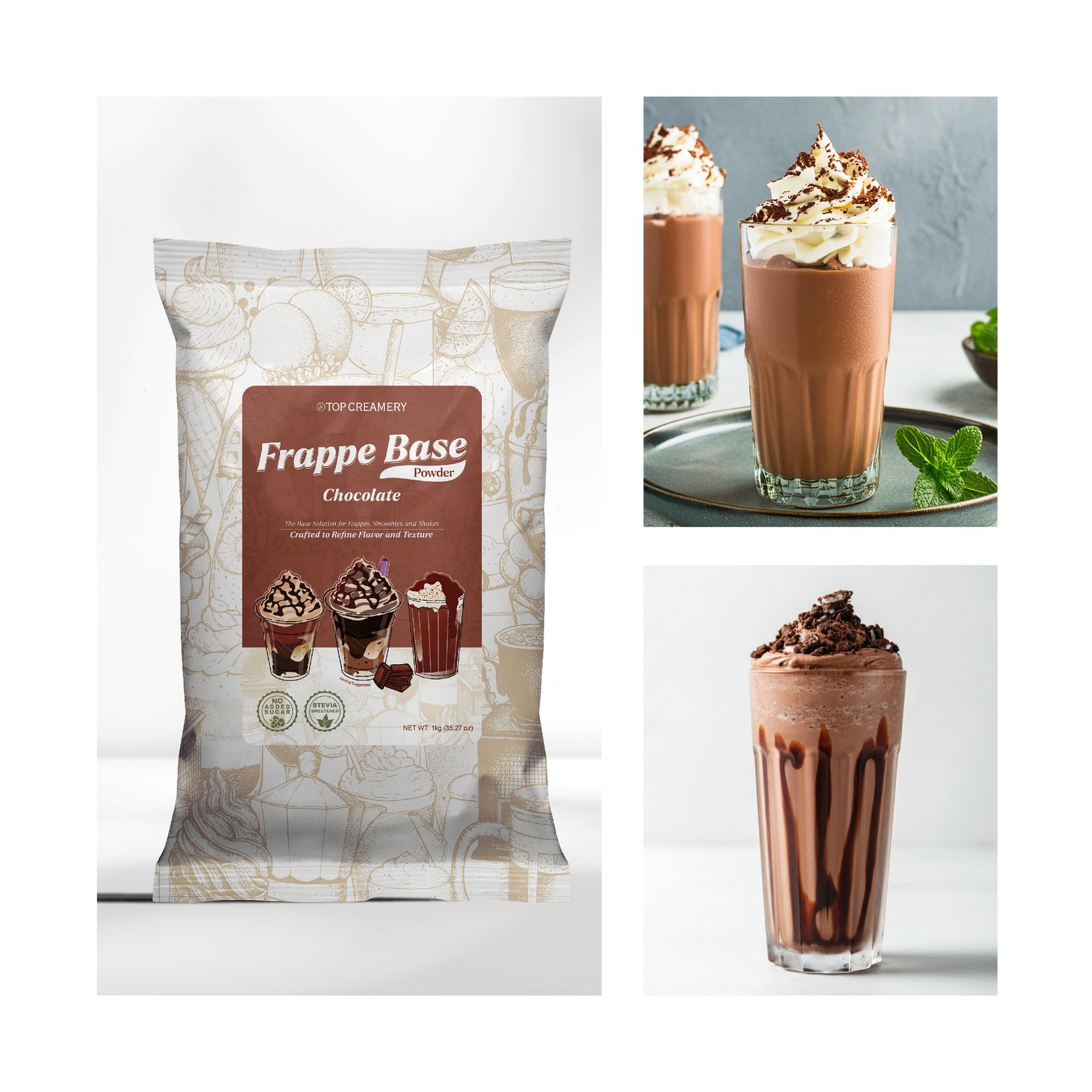 Versatile across coffee blends, chocolate smoothies, iced frappes, and milk teas. Compatible with both dairy and non-dairy liquids. This chocolate frappe base powder integrates seamlessly with syrups, creamers, and toppings—ideal for both streamlined menus and custom builds.