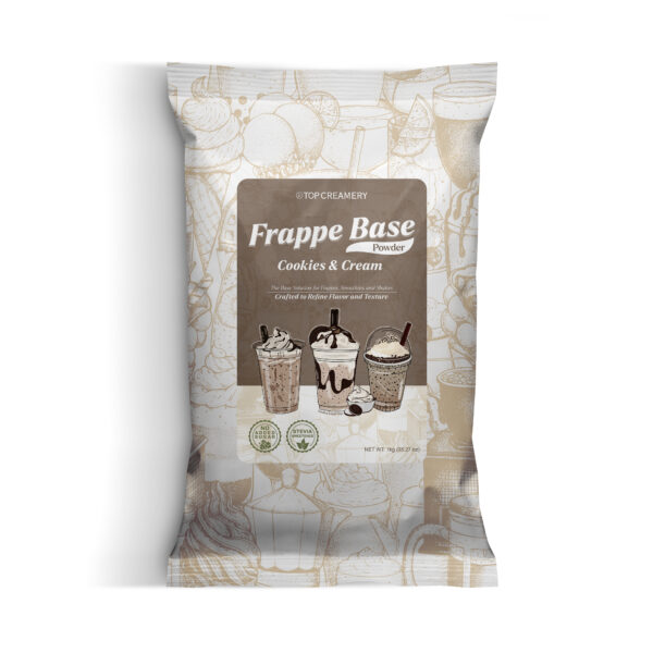 Use this cookies and cream frappe base powder across a range of café and dessert drinks—ice-blended milk teas, signature frappes, frozen milkshakes, or cream-topped dessert beverages. Easily blends with other syrups, cookies, or chocolate-based toppings. Functions well in dairy or dairy-alternative builds.