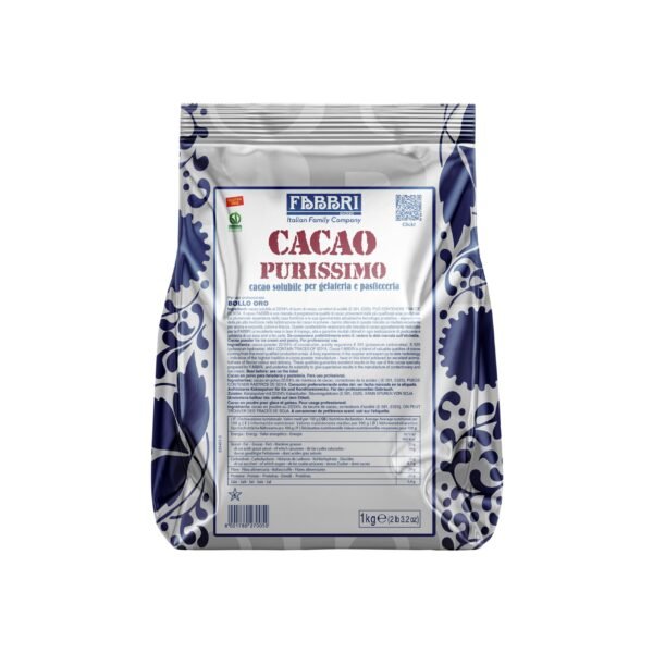 Fabbri 1905 Cacao Purissimo Bollo Oro Vegan Powder is a premium cocoa ingredient, carefully crafted to meet the needs of chefs, bakers, and gelato makers seeking excellence in their creations. Its deep flavor and silky texture make it an indispensable choice for versatile applications.