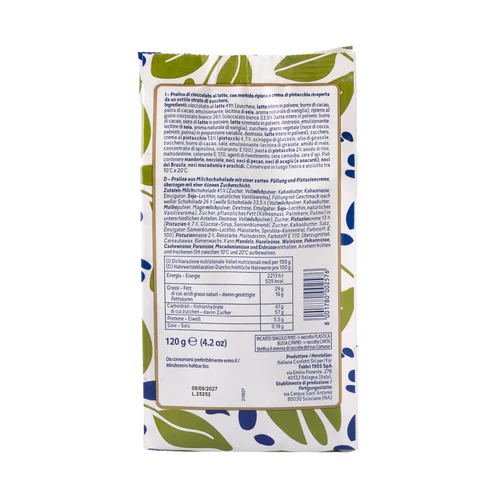 Fabbri 1905 Cuor di Pistachio - Chocolate Covered Pistachio Bombons 120g expresses the richness of pistachio chocolate bombons for desserts through a velvety pistachio cream core, layered beneath milk chocolate and a fine sugar coating. The result is a balanced contrast of creamy nuttiness and crisp shell, ideal for intricate pastry work and frozen dessert applications. As pistachio chocolate bombons for desserts, it lends itself to entremets, praline inserts, gelato inclusions, and plated dessert garnishes. Its composition allows chefs to incorporate pistachio chocolate bombons for desserts into both classic European formats and modern culinary interpretations. For kitchens requiring pistachio chocolate bombons for desserts, it delivers consistency in flavor, structure, and presentation.