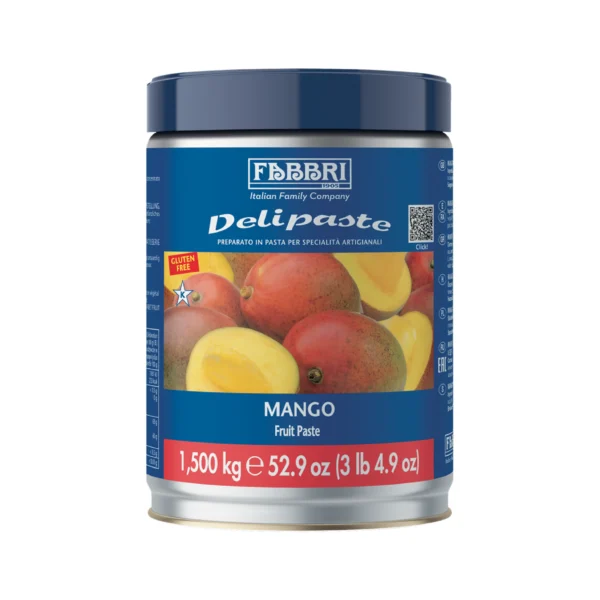 Fabbri 1905 Delipaste Mango Gluten-Free Fruit Paste 1.5kg delivers ripe mango intensity in a concentrated format designed for gelato clarity, refined pastry layering, and tropical dessert architecture. This mango fruit paste for gelato and desserts supports clean flavor expression with consistent blending, while the gluten-free mango paste for pastry and semifreddo helps professional kitchens standardize premium results across multiple formats.