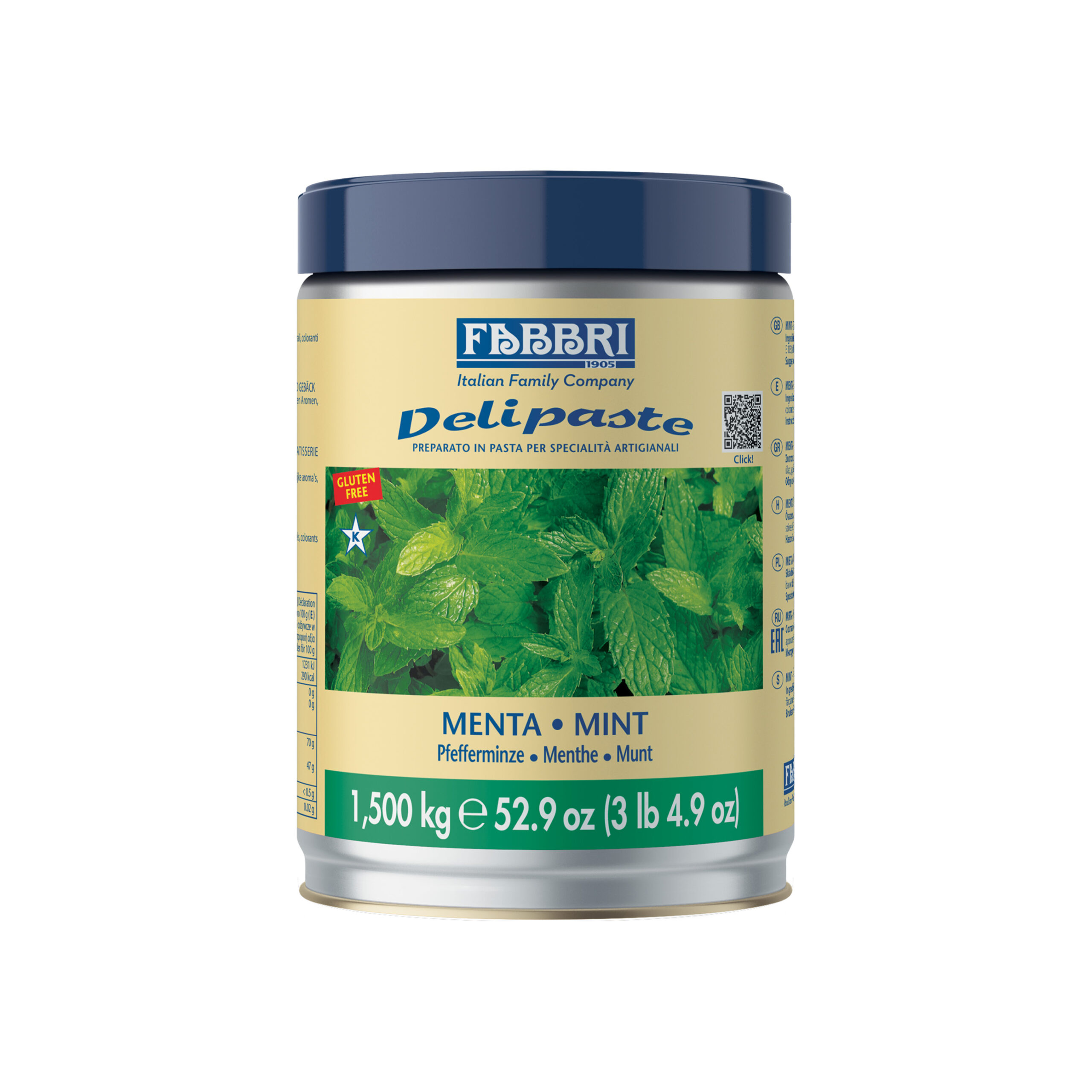 Fabbri 1905 Delipaste Mint Gluten-Free Paste delivers a refreshing mint flavor in a versatile, gluten-free format. Perfect for gelato, pastries, and desserts, it offers consistent taste and premium quality.