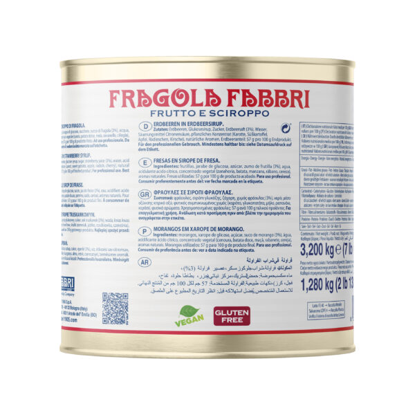 Fabbri 1905 Fragola (Strawberry) Vegan Fruit and Syrup enhances desserts with the natural sweetness and vibrant flavor of ripe strawberries. This versatile ingredient is ideal for creating indulgent yet refreshing treats.