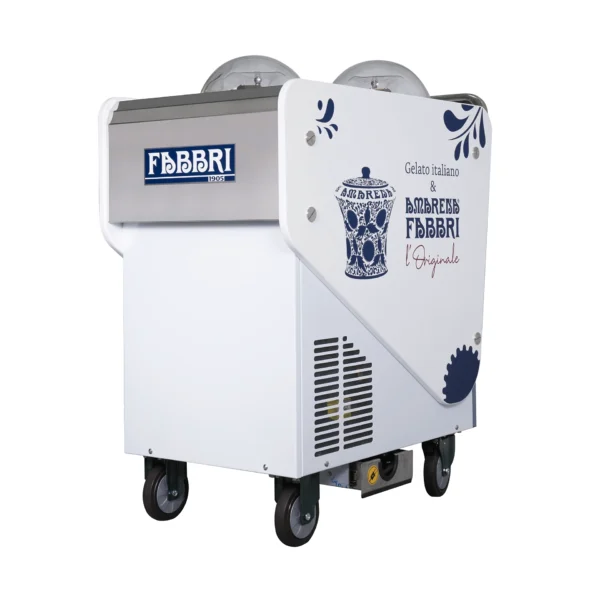 The Fabbri 1905 Gelato System 2-Flavor Electric Mobile Cart Machine is a fully integrated, battery-powered mobile solution that blends Italian craftsmanship with unmatched versatility. This all-in-one displayable gelato system machine is designed to produce, preserve, and serve artisanal frozen desserts directly from the cart—no display case, no blast freezer required.