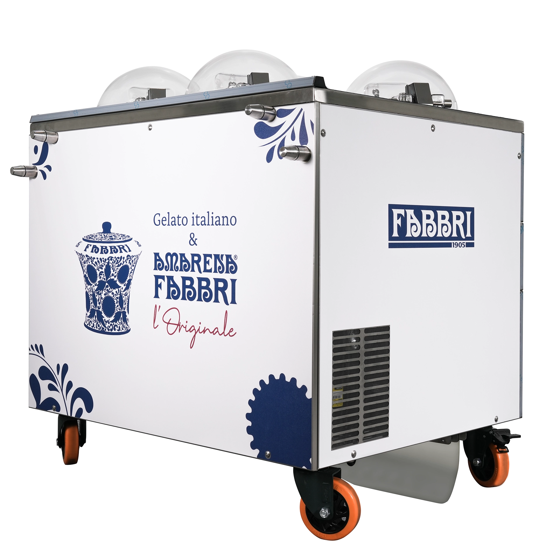 The Fabbri 1905 Gelato System 4-Flavor Floor Standing Machine offers a seamless, displayable churning experience with a fully integrated, all-in-one gelato system. Designed to batch, store, and serve fresh gelato directly at the counter, this solution redefines how artisanal frozen desserts are prepared—without the need for a blast freezer, or traditional gelato display. Built to suit gelaterias and diverse foodservice spaces, this Italian-crafted innovation is a standout in both performance and visual appeal.