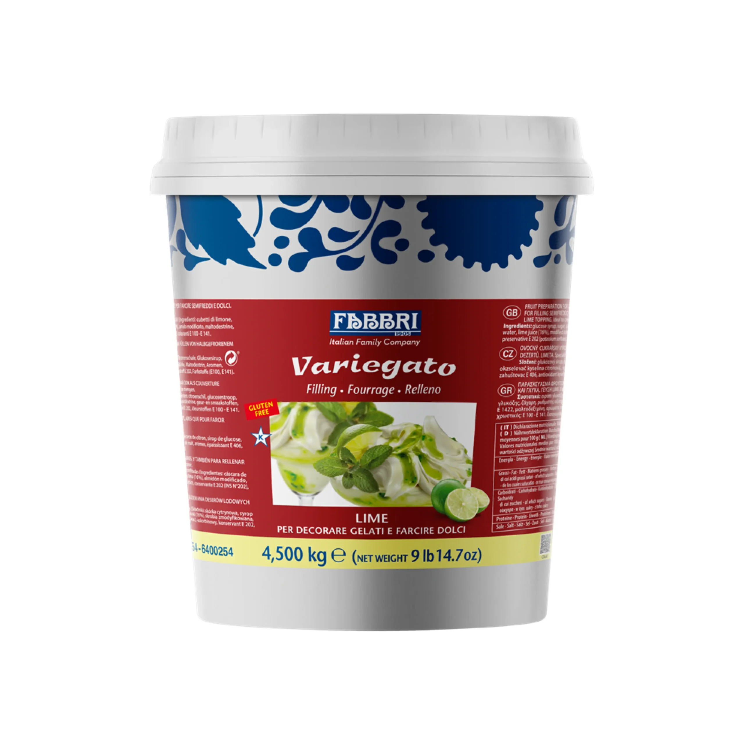 Fabbri 1905 Lime Marbling-Filling Paste 4.3kg is a bright, sour-leaning citrus paste made for clean ribbons, glossy swirls, and precision filling in premium dessert work. Built to stay smooth even in deep chill, this lime marbling paste for gelato and semifreddo delivers high-impact contrast, while the citrus variegato filling for cakes and frozen desserts supports crafted gourmet creations with consistent texture and definition.
