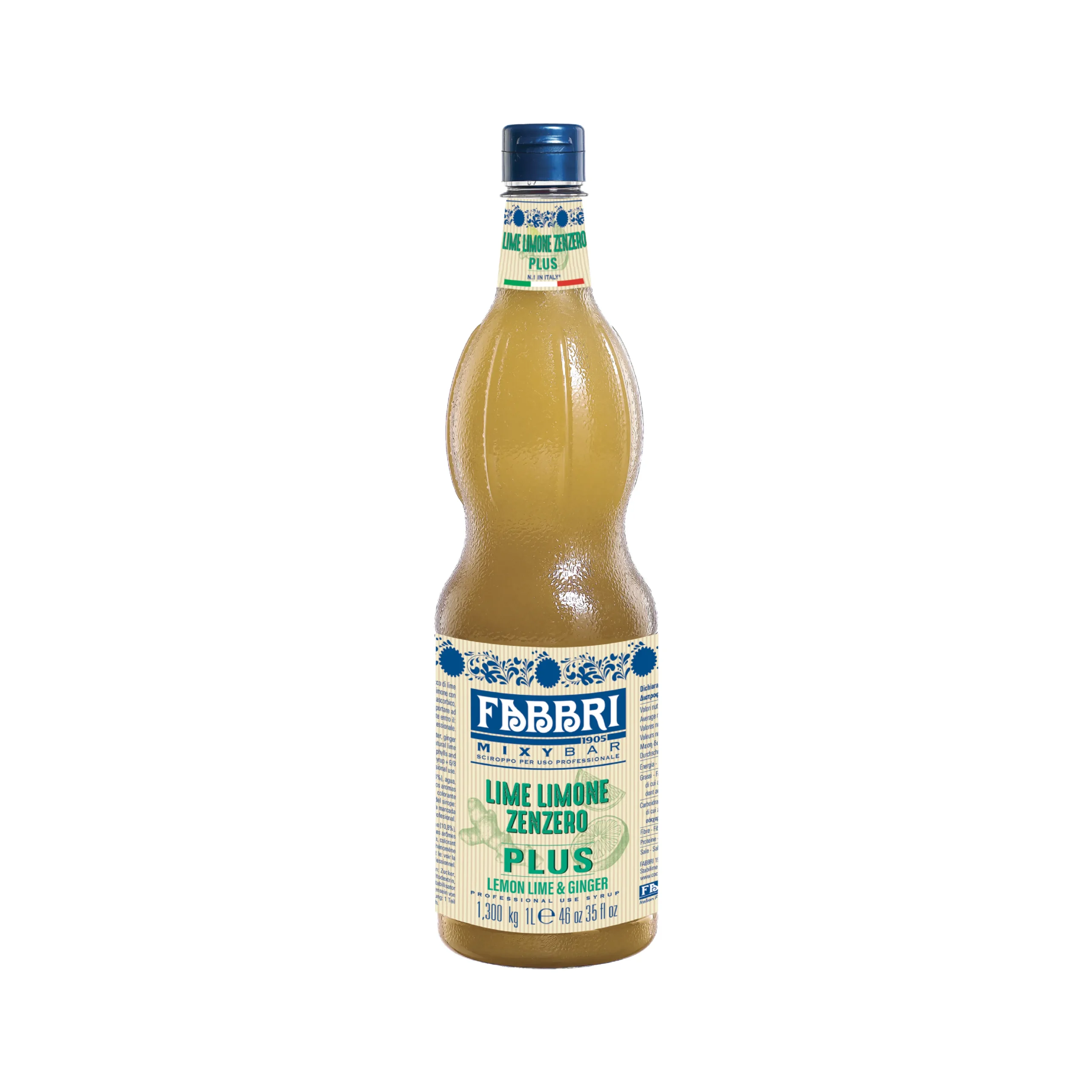 Deep gold in the bottle, softly opalescent when worked into creams, Fabbri 1905 Mixybar Natural Plus Lime Lemon Ginger Gluten-Free Syrup 1.3kg delivers a high-definition citrus-spice profile powered by lime juice and pulp plus ginger. Built for precision in pastry and frozen desserts, lime lemon ginger syrup for pastry and dessert recipes and gluten-free citrus ginger syrup for gelato and granita bring aromatic lift, clean acidity, and a lingering ginger warmth suited to crafted gourmet menus.