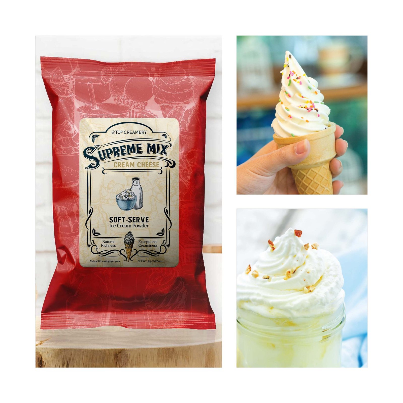Supreme Mix Soft-Serve Ice Cream Cream Cheese Powder delivers natural richness and exceptional creaminess. A standout offering from the TOP Creamery Supreme Mix Series, this blend offers the indulgent tang of cream cheese, creating a luxurious soft-serve experience that rivals global standards.