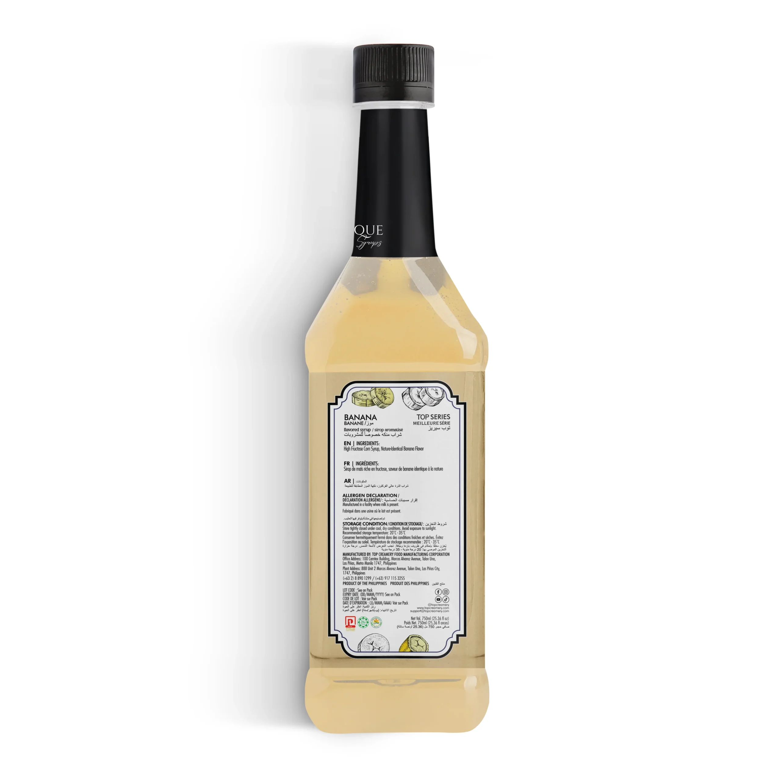TOP Series Classique Banana Syrup 750ml delivers ripe, creamy banana character with satin viscosity and a polished sheen—designed for pâtisserie finishes, plated sauces, and frozen dessert variegato where true fruit clarity and consistency matter.