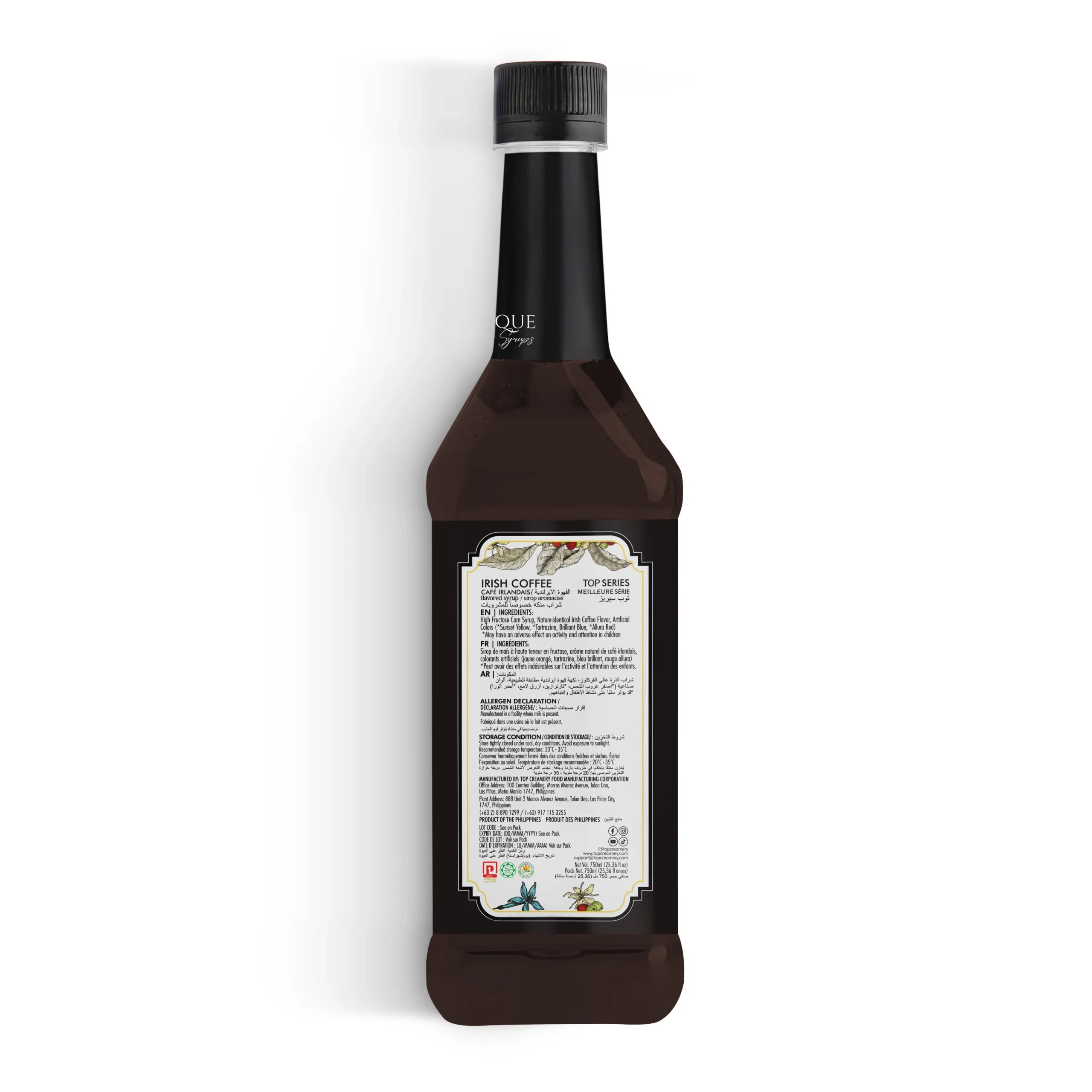 TOP Series Classique Irish Coffee Syrup 750ml concentrates bold roasted coffee notes with creamy vanilla warmth and a whisper of caramel—formulated for pâtisserie glazes, gelato ripples, sauces, custards, and fillings where depth, polish, and consistent aromatics are critical.