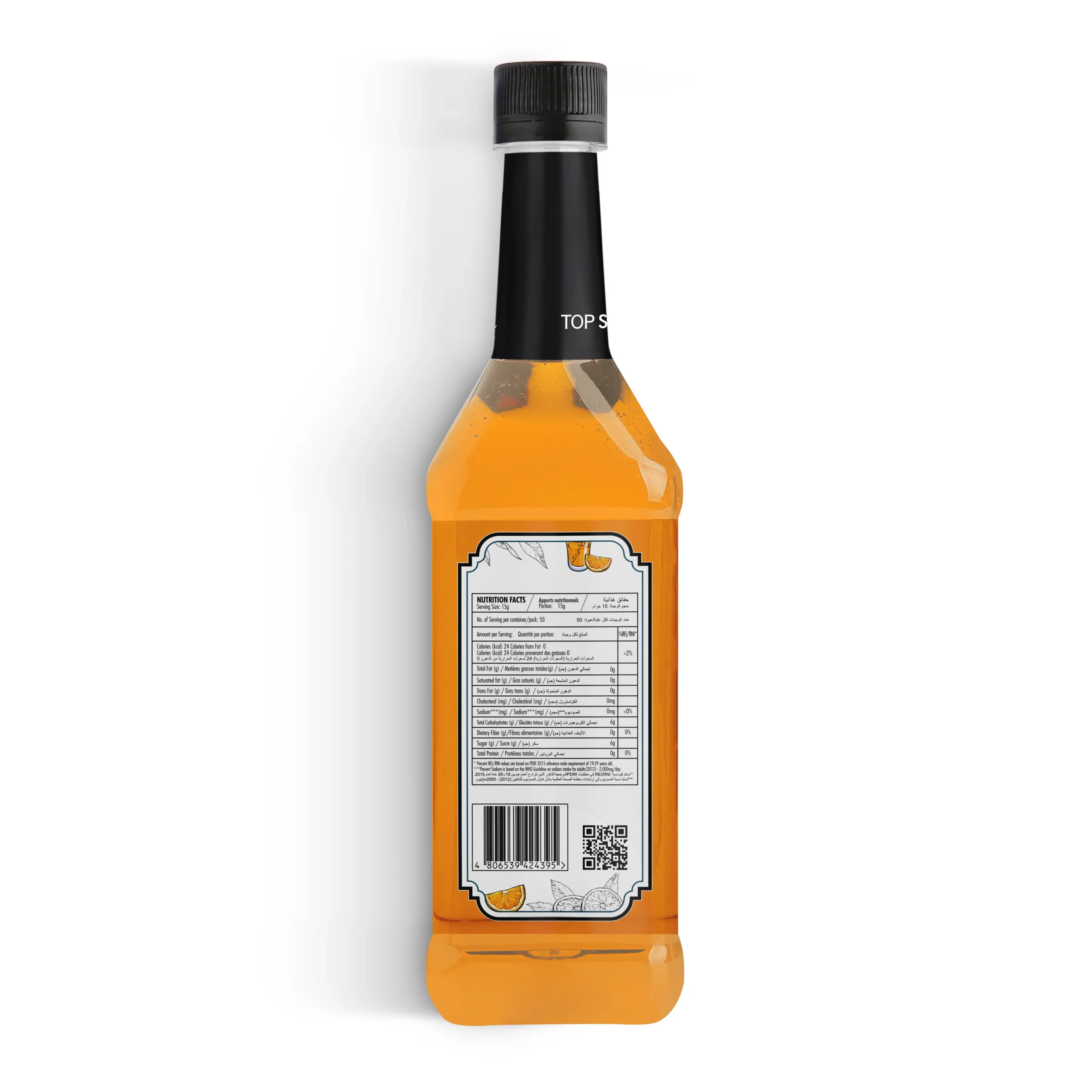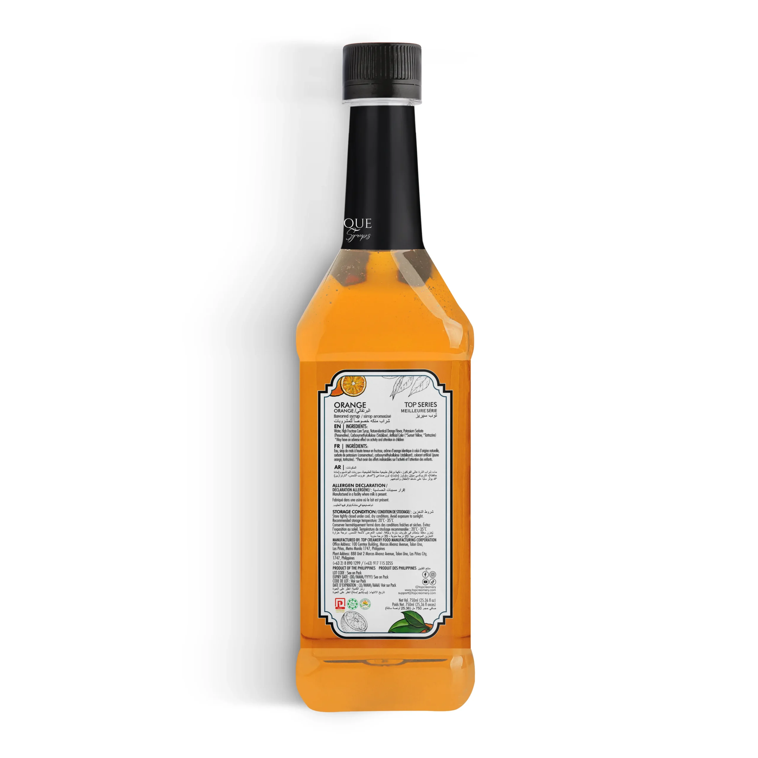 TOP Series Classique Orange Syrup 750ml concentrates bright Valencia-style citrus with balanced zest and sweetness—engineered for pastry glazes, gelato variegato, curds, sauces, and fillings where clean orange character, sheen, and stability matter.