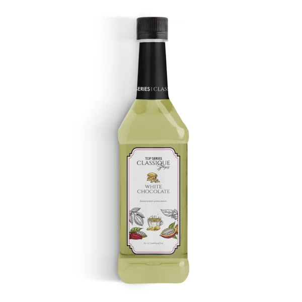 TOP Series Classique White Chocolate Syrup 750ml delivers silk-creamy cocoa butter notes with balanced sweetness and a polished sheen—engineered for pâtisserie finishes, plated sauces, and frozen dessert variegato where clean white-chocolate character and consistency matter.